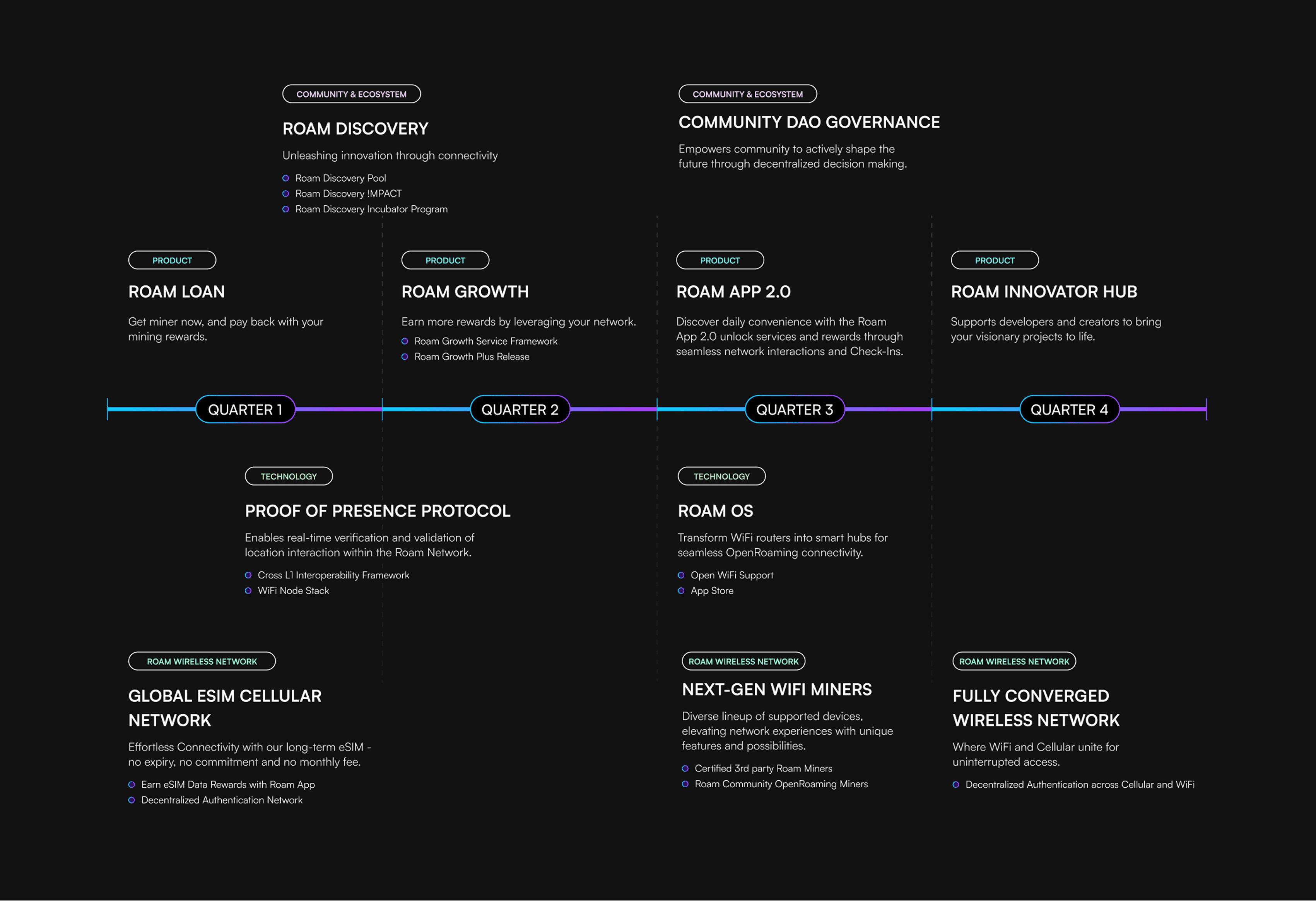The Roam Network integrates powerful WiFi protocols, including OpenRoaming, with Web3 capabilities to deliver a better WiFi experience that is also rewarding to its community.