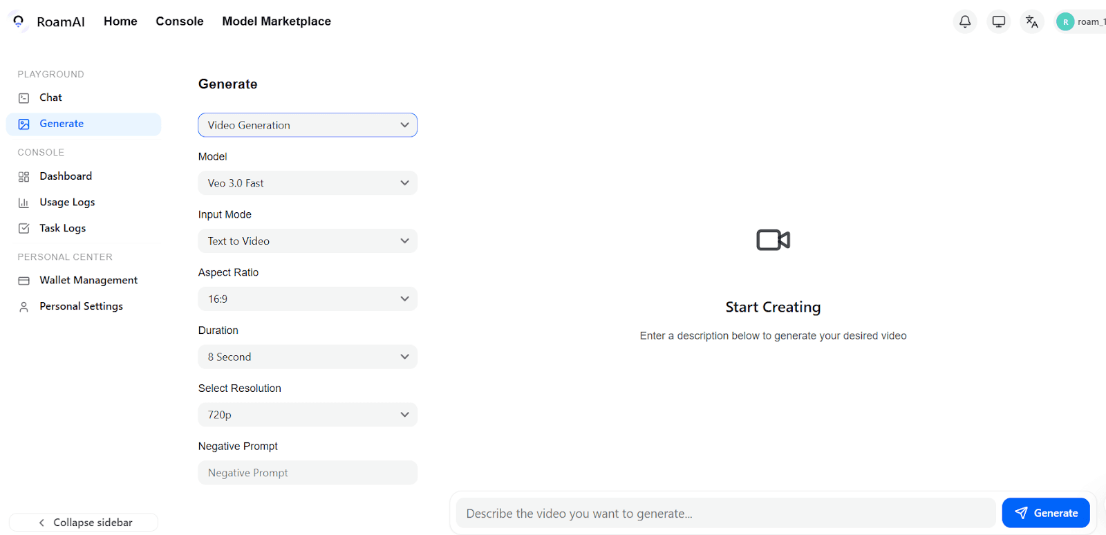 For users who want to create richer multimedia content, RoamAI also offers AI video generation. With this feature, users can transform text prompts or images into short videos that can be used for storytelling, marketing, or digital content creation.