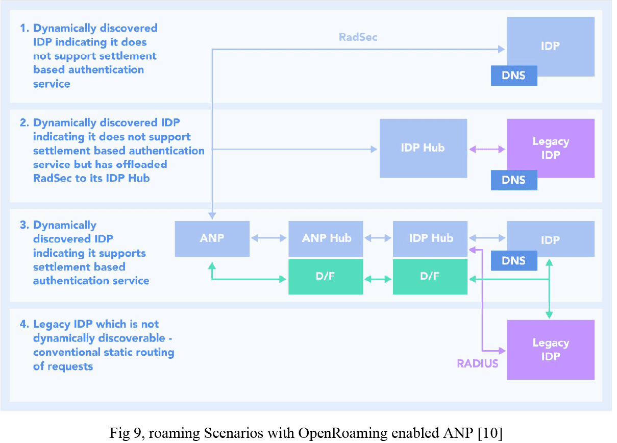 If a legacy ANP has not deployed OpenRoaming, it can still be deployed by an ANP Hub provider to support the 4 different IDP use cases.