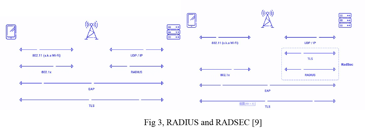 RadSec is an 802.11x protocol for transporting RADIUS datagrams through TCP (Transmission Control Protocol) and TLS (Transport Layer Security), which themselves are protocols. RadSec is not to be confused with RADIUS using EAP-TLS, which refers to RADIUS authenticating for the certificate-based 802.1x protocol.